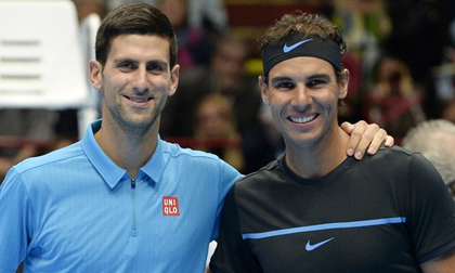 Nadal (phải) thừa nhận Djokovic là tay vợt vĩ đại nhất lịch sử