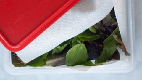 Khăn giấy có tác dụng hấp thụ độ ẩm từ rau còn hộp giúp bảo vệ lá rau khỏi những va đập bởi các thực phẩm xung quanh. Khoảng 5-7 ngày sau rau vẫn giữ được độ xanh tươi, không héo úa. Khoảng 10 ngày sau sẽ có vài lá bị úng nước nhưng có nhiều lá vẫn tươi và có thể dùng được.