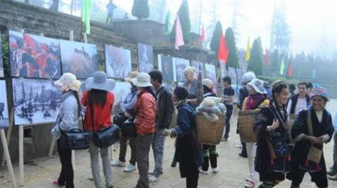 Du khách xem ảnh nghệ thuật về Sa Pa (Ảnh: Phạm Ngọc Bằng)