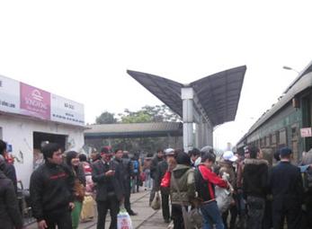 Sáng 27/1 (tức mồng 5 Tết) tại sân ga Vinh, thành phố Vinh, tỉnh Nghệ An, mặc dù trời lất phất cơn mưa phùn, gió mùa đông Bắc rét căm căm nhưng sân ga luôn trong tình trạng đông nghịt hành khách đứng đợi những chuyến tàu dừng tại sân ga để tiếp tục hành trình vào Nam ra Bắc.