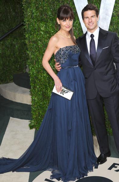 Katie Holmes tinh tế với đầm từ bộ sưu tập Elie Saab Haute Couture tạo dáng bên chồng là tài tử Tom Cruise trong tiệc hậu Oscar 2012 của Vanity Fair tổ chức bởi Graydon Carter tại Sunset Tower, West Hollywood, California ngày 26/2