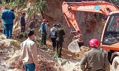Cơ quan chức năng phải dùng máy múc để đào đất để giải cứu các cháu nhỏ ra ngoài.