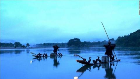 ngư dân dịa phương bắt cá bằng chim cốc.