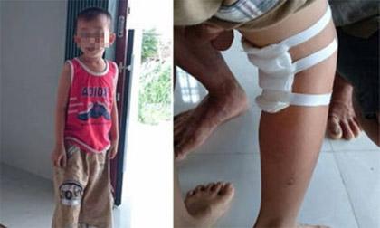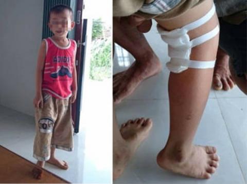 Bé Lê Nguyễn Quốc Hào và vết mổ ở chân phải - Ảnh: Báo Nhân Dân