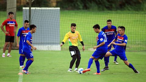 | Các cầu thủ U20 Việt Nam đang thể hiện tốt trên tuyển cùng đàn anh. |