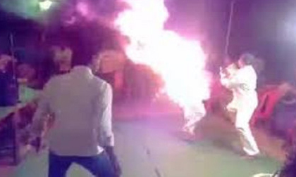 Can ngăn vợ dừng hát không được, người chồng tức giận liền tự thiêu giữa đám đông.