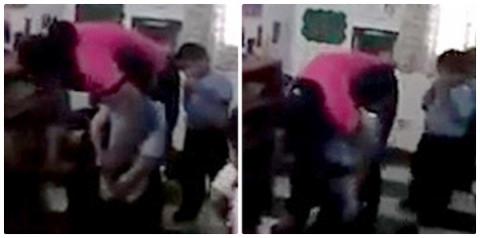 Người giáo viên kéo lê một em bé khoảng 4 tuổi vào góc lớp.