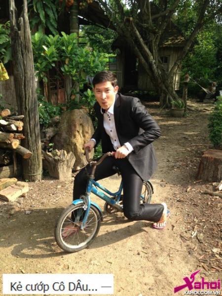 Huy Khánh nhí nhảnh tạo dáng phía sau phim trường