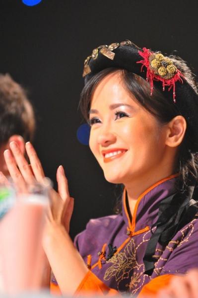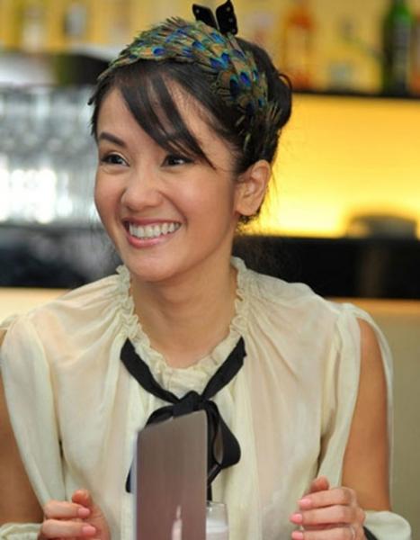 Nét nhẹ nhàng, duyên dáng của Hồng Nhung khá hợp với khăn vành đóng.
