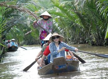 Du khách đi tour sông nước tại Bến Tre. Ảnh: TẤN THẠNH