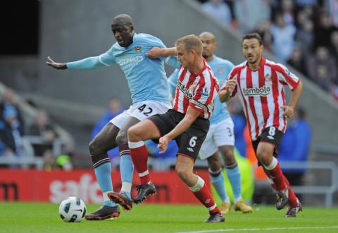 Man City (áo xanh) sẽ vượt qua Sunderland. Ảnh Getty
