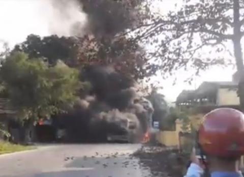 Vụ tai nạn liên hoàn làm 3 chiếc xe tải và 1 chiếc xe ô tô 4 chỗ cùng bị thiêu rụi xảy ra vào chiều 30-11 tại khu vực nhà máy chè Hương Lung ở tỉnh Phú Thọ.