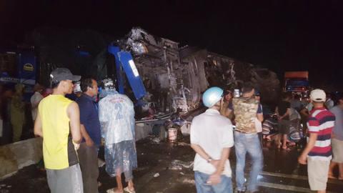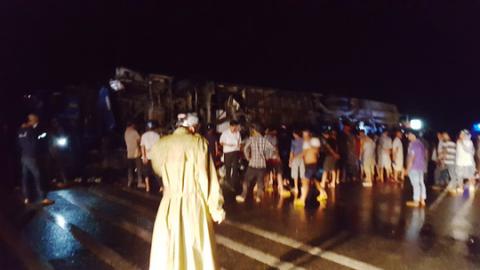 Vụ tai nạn xảy ra khoảng 19 giờ tối nay (25-4). Vào thời điểm trên, một xe khách giường nằm một xe khách giường nằm chạy từ huyện Hoài Nhơn (tỉnh Bình Định) đi TP HCM, khi đến đoạn đường trên thì đâm sập một đoạn dải phân cách giữa đường, rồi tông vào một xe tải.