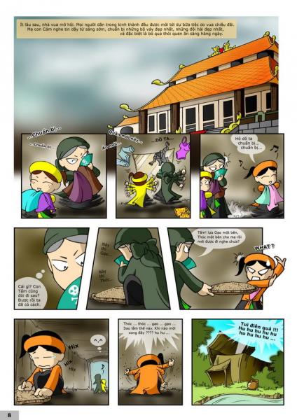 Ít lâu sau, nhà vua mở hội. Mẹ con Cám nghe tin dậy chuẩn bị những bộ váy áo đẹp nhất, đôi hài đẹp nhất, đặc biệt bỏ qua cá thói ăn sáng hàng ngày...