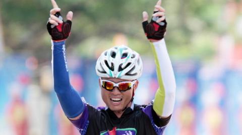 Đinh Quốc Việt đội Vinamit (TP. HCM) đã một lần nữa khiến làng xe đạp “giật mình” khi giành chiến thắng chặng 2. (Ảnh: Đức Đồng)