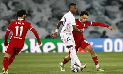Phút 13, Alexander-Arnold để sổng Vinicius và đường chuyền của chân sút người Brazil tìm đến vị trí của Ferland Mendy, chỉ tiếc là hậu vệ người Pháp lại đánh đầu đưa bóng bay chệch cột.