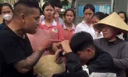 Theo ghi nhận từ clip, thanh niên mặc áo đen với thân hình to béo, xăm trổ đã có hành vi dùng tay đánh, đấm liên tiếp vào vùng mặt và gáy với một học sinh. Trước sự côn đồ của thanh niên trên, nam sinh không phản kháng mà ngồi im trên xe đạp điện cúi mặt "chịu trận".
