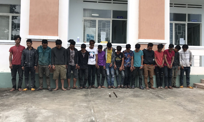 Nhóm thanh niên làng Klá tại cơ quan công an.