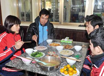 Bữa cơm tại TTHLTTQG Hà Nội - Ảnh: NAM HẢI