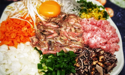 Thêm đĩa thịt ba chỉ luộc thái mỏng. Rau cần và rau cải cúc rửa sạch, cắt khúc ngắn vừa ăn xếp vào đĩa. Ngoài ra còn có rau húng thơm, xà lách, hành hoa cắt khúc, rau mùi….Khi ăn, gắp đủ các thứ rau vào bát, rưới mắm lên trên…