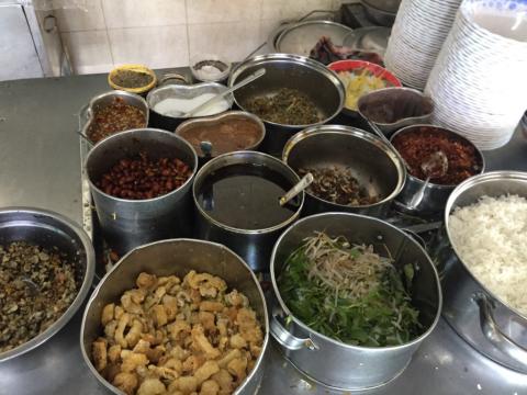 | Giá một bát cơm hến chỉ từ 10.000-15.000 đồng.Để thưởng thức hương vị đậm đà của món ăn giản dị này,bạn có thể tìm đến quán Hoa Đông ở thôn Vỹ Dạ. Ảnh: Hương Giang. |