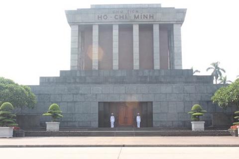 Lăng được xây dựng ở quảng trường Ba Đình, Hà Nội. Trong lăng là thi hài của Chủ tịch Hồ Chí Minh, được đặt trong hòm kính ghép bằng đá đen huyền lấp lánh. Qua lớp kính trong suốt, Bác Hồ hiện lên trong bộ quần áo ka ki bạc màu, dưới chân có đặt một đôi dép cao su. Lăng Bác có chiều dài 320m, rộng 100m và 240 ô cỏ xanh tươi suốt bốn mùa.