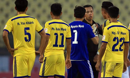 Trọng tài Trung Kiên B bị các cầu thủ SLNA phản ứng ở vòng 5