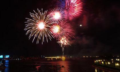 Pháo hoa nghệ thuật bắn từ hầm vượt sông Sài Gòn