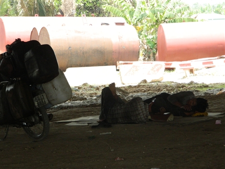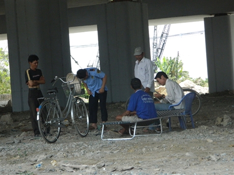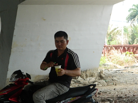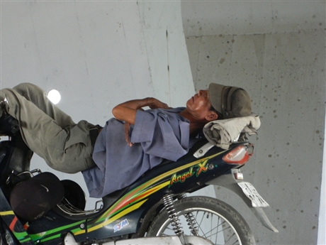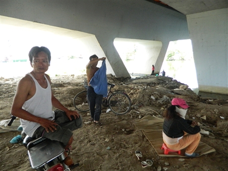 Nắng nóng làm nhiều người đi đường phải chui xuống gầm cầu Rạch Chiếc để tránh. Nhiều người tranh thủ nghỉ trưa. Chùm ảnh PV ghi nhận dưới gầm cầu Rạch Chiếc (nối quận 2 và quận 9, TPHCM).