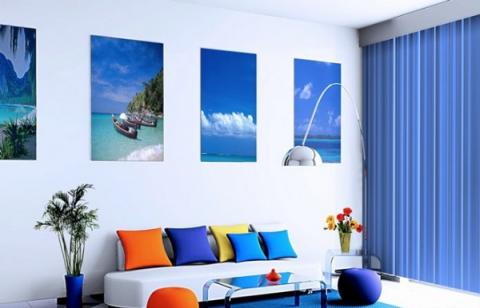 Màu xanh của biển, trời và màu trắng của cát là hai màu chủ đạo của biển. Hãy sơn lại tường nhà với màubiển và trời hay đơn giản là thay “chiếc áo mới” cho sofa, rèm cửa…là đã đủ để tạo ra cảm giác mát mẻ của biển cả. Bạn cũng có thể thêm một chút màu nắng cho không gian thêm sinh động và rực rỡ hơn.