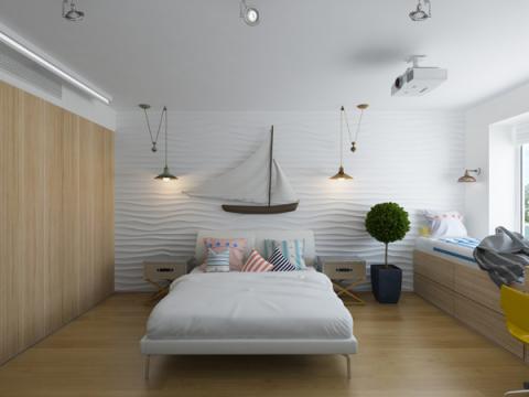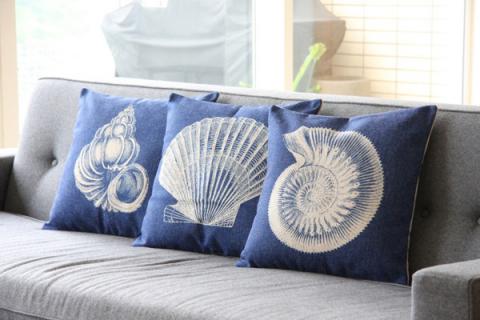 Những họa tiết mang chủ đề biển cảnhư cánh buồm, mỏ neo, hải âu, sao biển… trên gối tựa, rèm cửa hay bộ ga, gối của phòng ngủ cũng là một cách để mang hơi thở của biển vào trong nhà.
