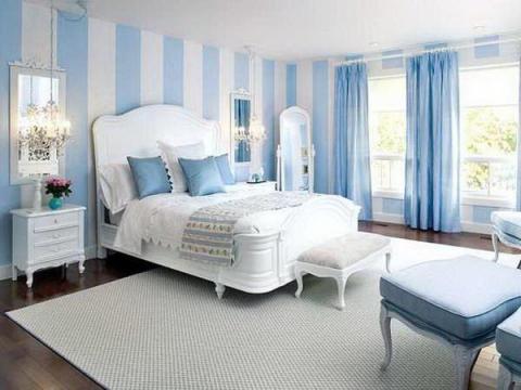 Sử dụng hai màu chủ đạo trong phòng ngủ khiến không gian rộng rãi, tươi mát hơn.