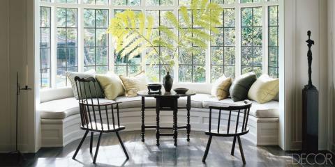 Hãy để một chi tiết kiến trúc giống như cửa sổ lớn truyền cảm hứng cho không gian ngôi nhà bạn. Bàn kính trắng càng làm tăng hiệu ứng ánh sáng tự nhiên đến từ cửa sổ và đem tới cảm giác rộng rãi hơn cho căn phòng.