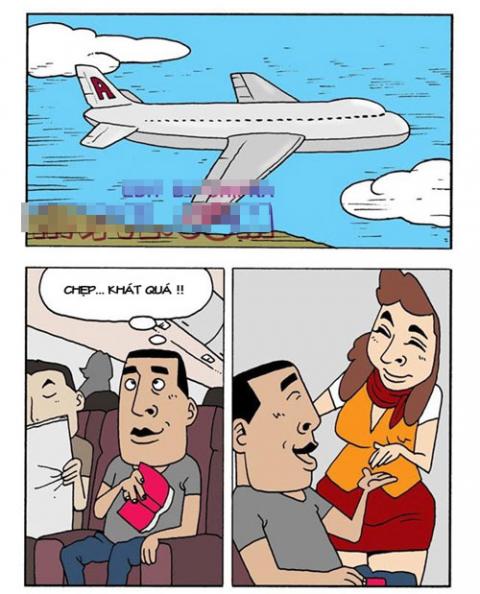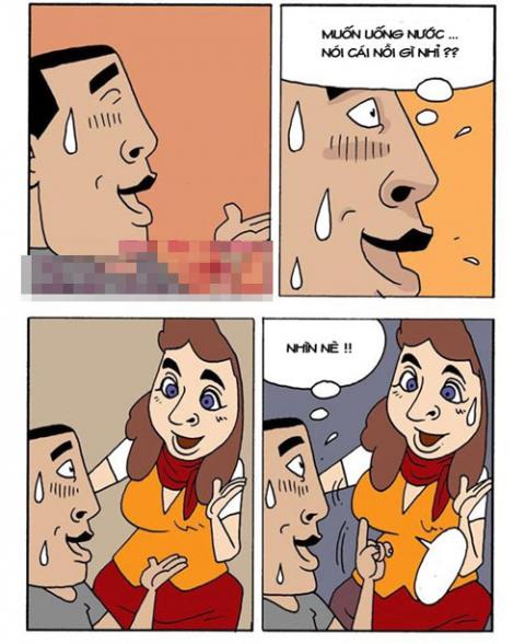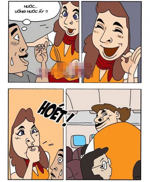 Trên máy bay, chàng trai thực sự khát nước nhưng không biết tiếng Anh để nói với cô tiếp viên thế nên phải dùng ngôn ngữ cử chỉ...