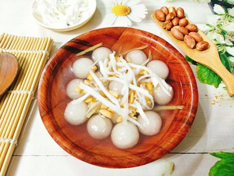 - Bước 5: Trong khi đó bạn đổ 1 lít nước vào nồi sạch, thêm đường, gừng thái sợi rồi nấu cho nước đường tan hết và nồi chè sôi lên thì bạn vớt các viên chè cho vào nồi nấu cùng.