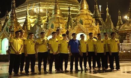 Tối qua (17/11), thầy trò HLV Hữu Thắng đã tới chùa Vàng Shwedagon nổi tiếng của đất nước Myanmar để cầu an lành và may mắn cho hành trình AFF Cup sắp tới.