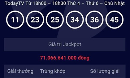 Sáng 14/11, Công ty Xổ số điện toán Việt Nam (Vietlott) phát đi thông cáo báo chí, xác định vé trúng thưởng giải Jackpot trị giá trên 71 tỷ đồng trong kỳ mở thưởng thứ 51 vào tối hôm qua (13/11), có chuỗi số 11-23- 25-34- 36-45.
