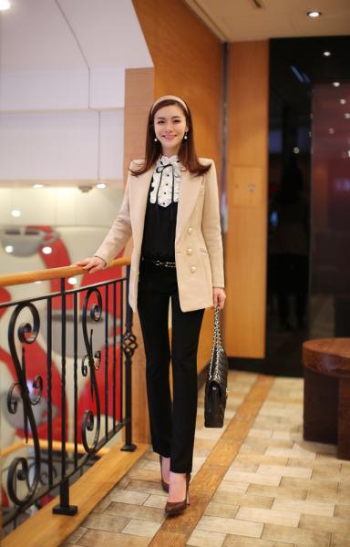 Cũng cùng một chiếc vest dáng dài nhưng với cách mix đồ với sơ mi cổ bèo nhún là bạn đã có ngay phong cách của một tiểu thư nơi công sở.