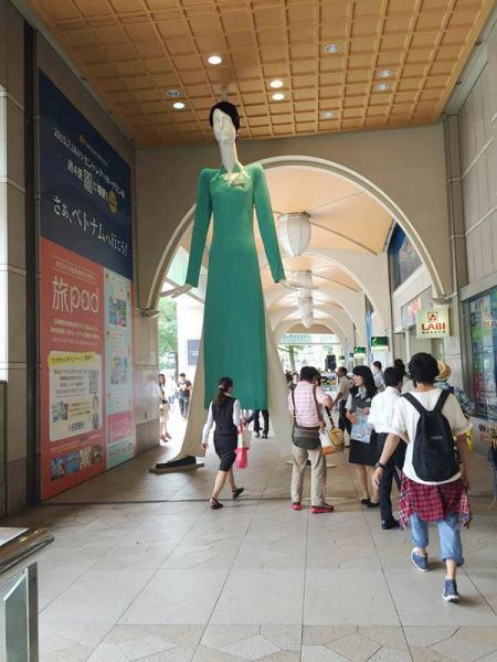 Cộng đồng mạng xôn xao trước hình ảnh kỳ lạ của búp bê khổng lồ trong một sự kiện quảng cáo của Vietnam Airlines tại Nhật Bản.