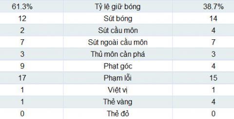 Thông số trận đấu: