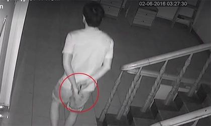 Tên trộm cầm dao đi lại dò xét trên tầng 3