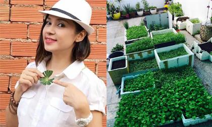 Khu vườn nhà của Việt Trinh rộng mênh mông với đủ loại cây trái. Tuy nhiên, nữ diễn viên vẫn tận dụng thùng xốp, những chậu cây nhỏ hay góc vườn để trồng rau sạch. Qua đây, nhiều người cũng ao ước có một vườn rau nho nhỏ trong nhà như Việt Trinh.