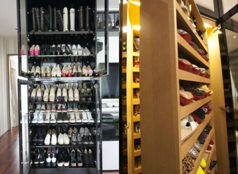 một tủ quần áo lớn gần bằng phòng ngủ và những tủ giày dép san sát.
