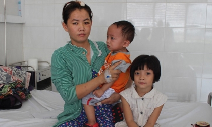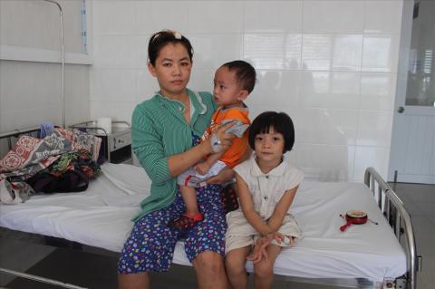 Chị Hằng bên 2 con nhỏ trong bệnh viện.
