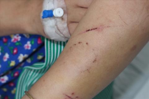Vết cắn của đối tượng Trung còn hằn sâu trên tay chị Hằng.