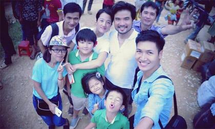 Bố con Mạnh Trường tranh thủ tự sướng cùng mọi người.