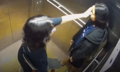 Thời điểm 2 cô gái lên thang máy chung cư khoảng gần 2 giờ sáng. (Ảnh trích xuất từ camrea)