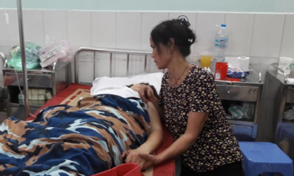 Cô giáo T. được mẹ chăm sóc khi còn cấp cứu trong bệnh viện. (Ảnh:
