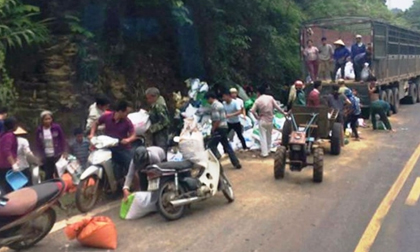 “Đến khoảng 8-9h ngày 19/5, chủ hàng mới đến và nhờ bà con bốc hàng lên một chiếc xe khác. Còn lại những bao hàng bị vỡ vụn, rơi vãi tại hiện trường, đích thân chủ hàng cho bà con đem về sử dụng coi như là cảm ơn bà con vì đã vất vả cả đêm dọn dẹp hiện trường. Do đó bà con mới mang phương tiện ra chở về chứ tuyệt đối không có chuyện người dân xông vào hôi của. Quá trình bà con thu nhặt những bao hàng bị vỡ chúng tôi cũng có mặt tại đó”, Trung tá Hà nói.