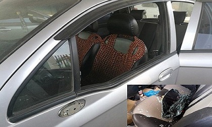 | Chiếc xe của cha con ông Nhu sau vụ va chạm |